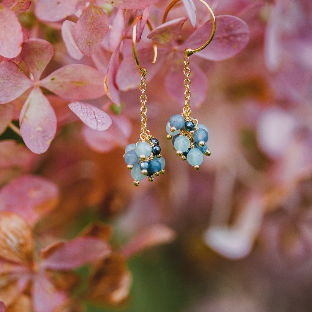 Amazonitų miksas, žalvaris, padengtas 118 karatų auksu.