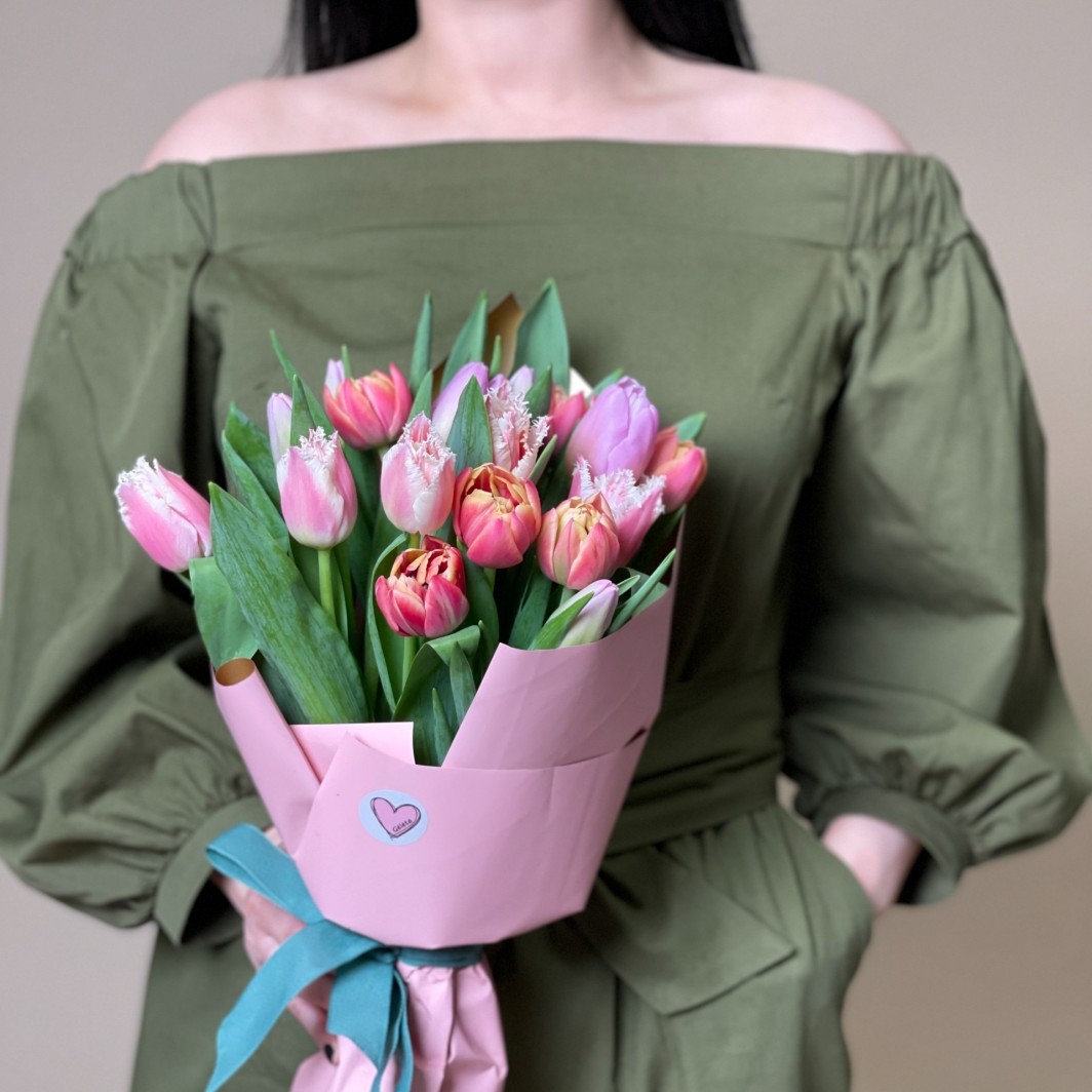 TULPIŲ PUOKŠTĖ MIX – derančių atspalvių tulpių mix. Pavasariška ir gaivi puokštė skirta nustebinti ir džiuginti.