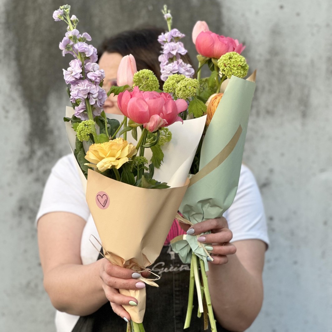 Gėlės puokštėje gali keistis pagal sezoniškumą, bet mes stengsimės jog puokštė būtų kuo panašesnę į esančią nuotraukoje.