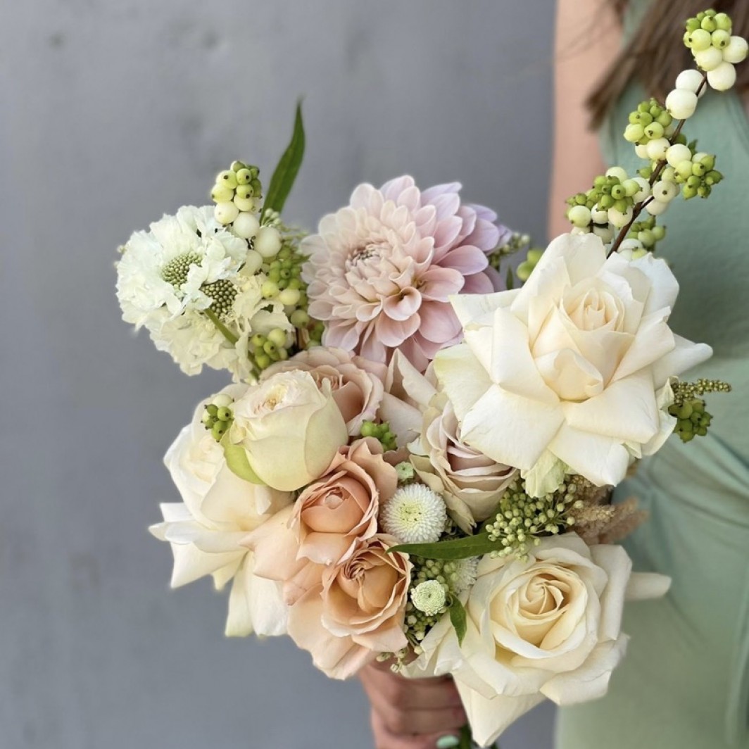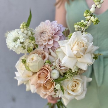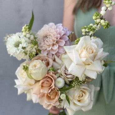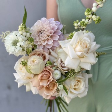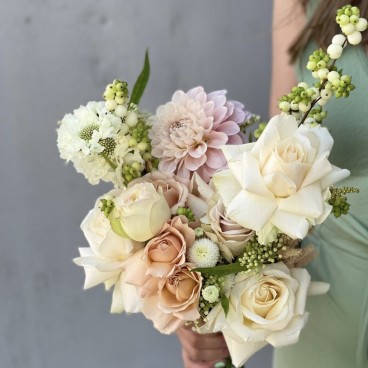 Nuostabi, kreminė ir šiltų atspalvių nuotakos puokštė. Ypatingi ir kruopščiai atrinkti žiedai. Kai kurios gėlės yra sezoninės, todėl dėl daugiau detalių reikėtų susisiekti ir aptarti iš anksto. Nuotrauka inspiracinė. Nuotakos puokštė kuriama individualiai Jums ir pagal Jus.